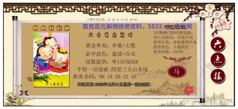 | 335期:平特连肖『牛虎狗鸡马』开:1肖 |