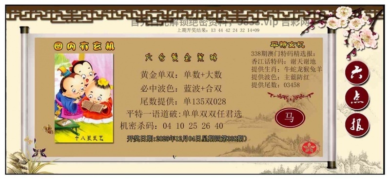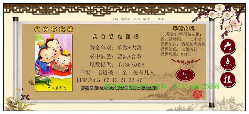 | 337期:平特连肖『蛇羊牛虎鸡』开:2肖 |